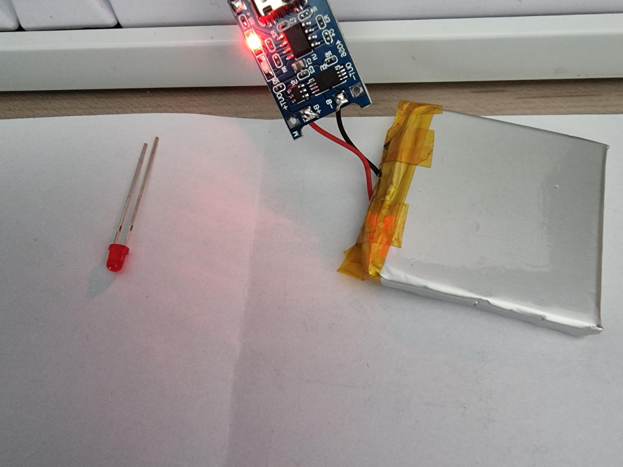 LED는 여러 색을 내는 RGB를 사용할 수 없어서 한가지를 사용했기 때문에 충전 중 표시를 나타내는 LED에 연결해주었습니다.