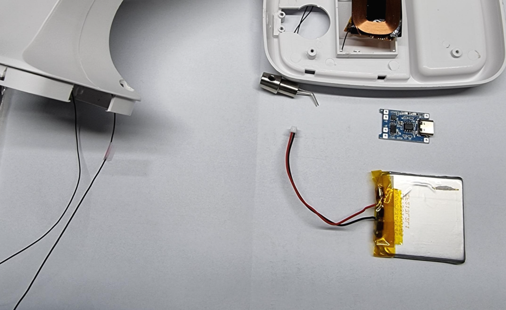 하지만 여기까지 해놓고 나서 무선 충전 모듈을 땜질하지 않은걸 알게되었습니다.....