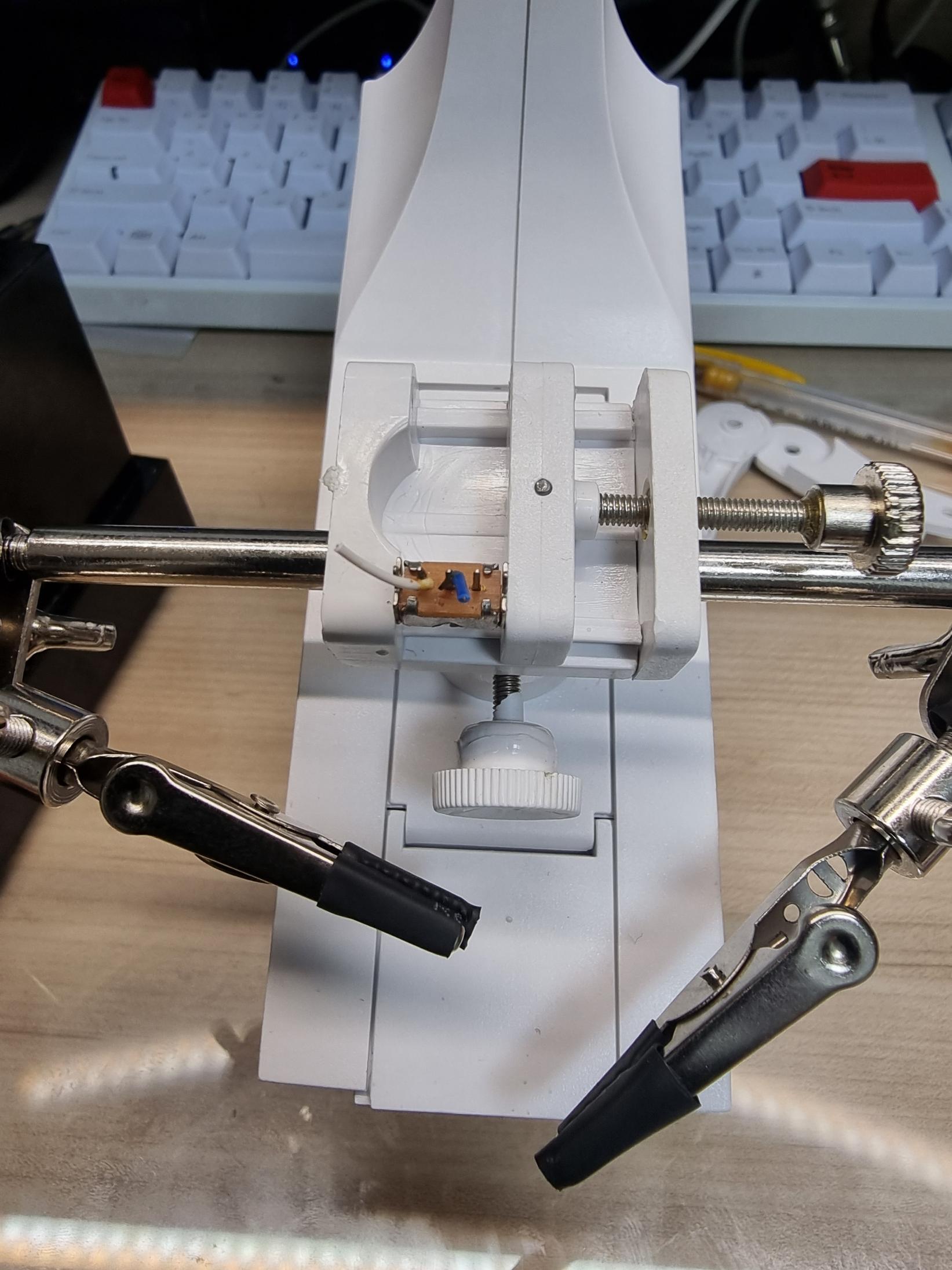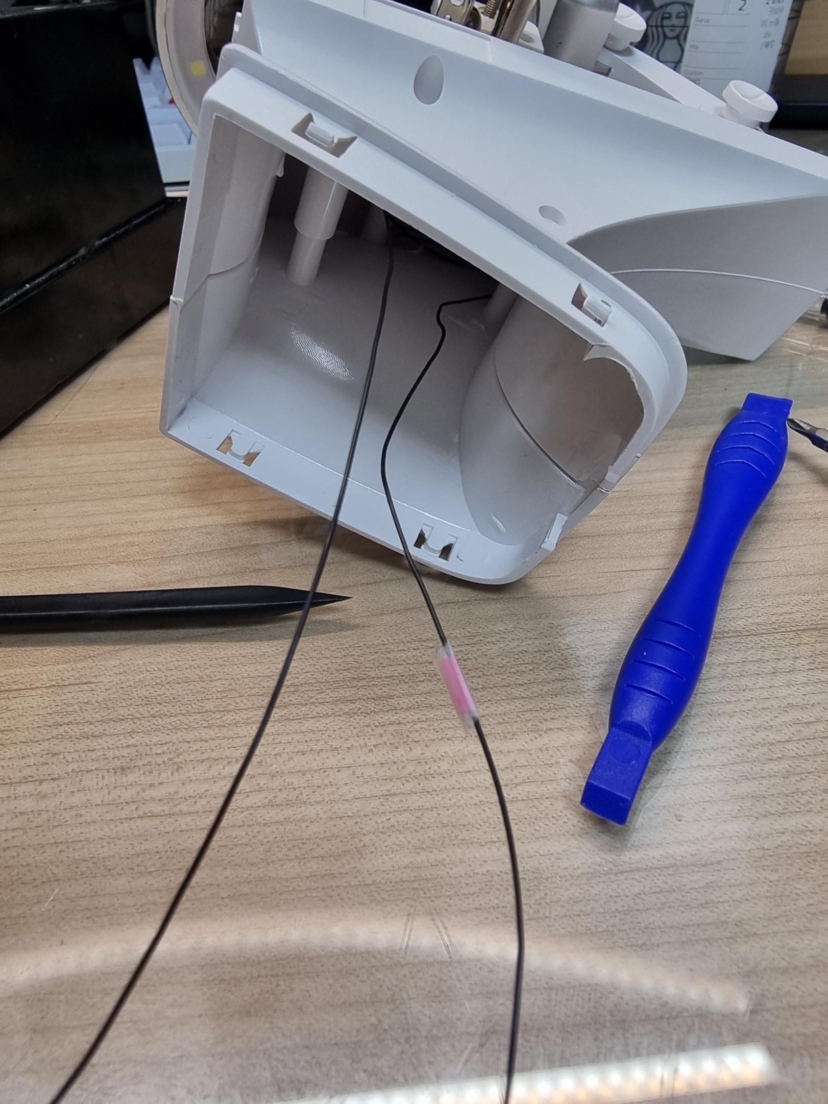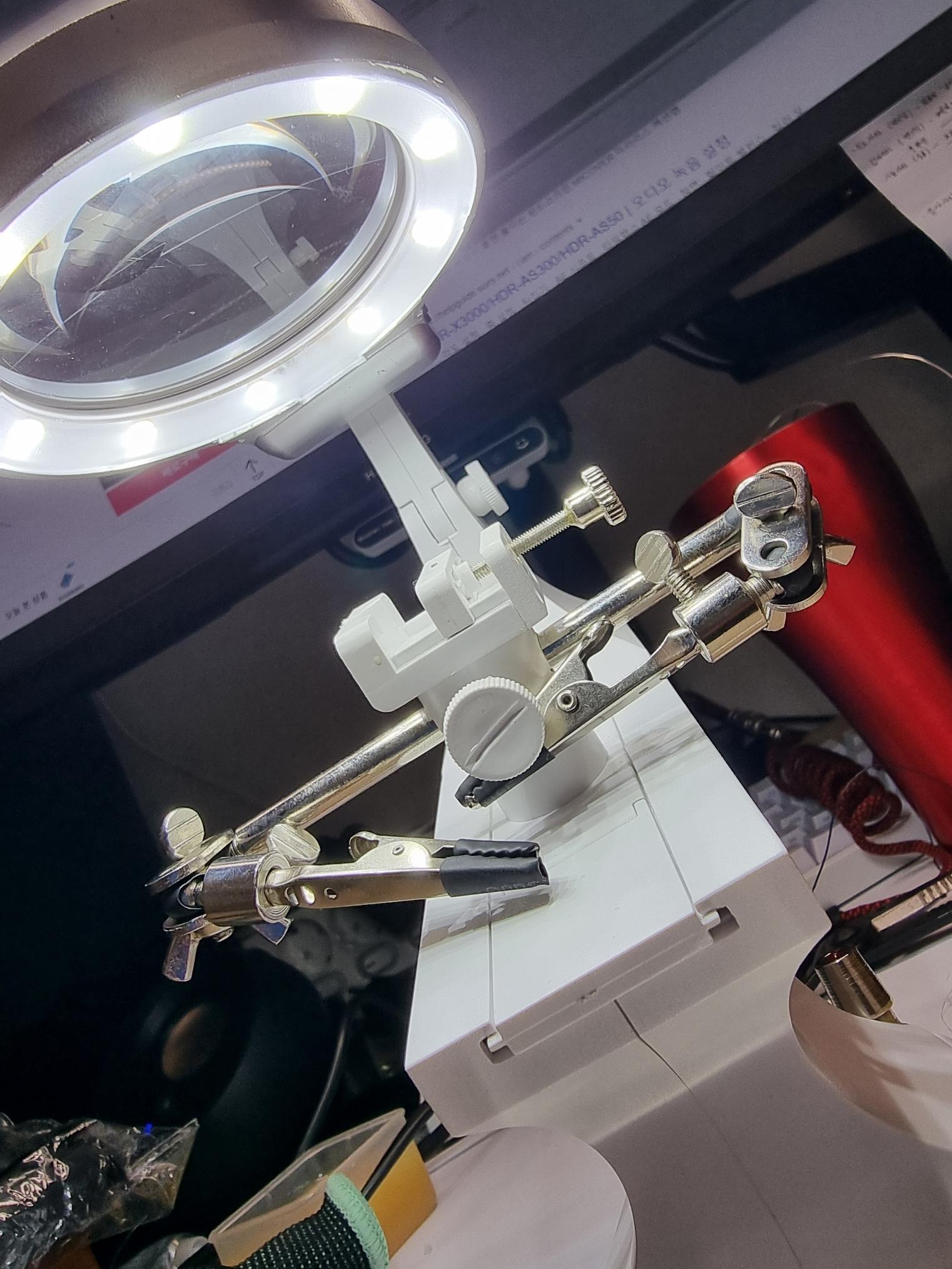 이 스탠드에는 각도를 조절 할 수있는 부위가 두 곳이 있는데 26AWG? 28AWG? 케이블을 사용했지만 너무 두꺼워서 전선이 갈려있었고, 쇼트가 나있던 상황이였습니다.