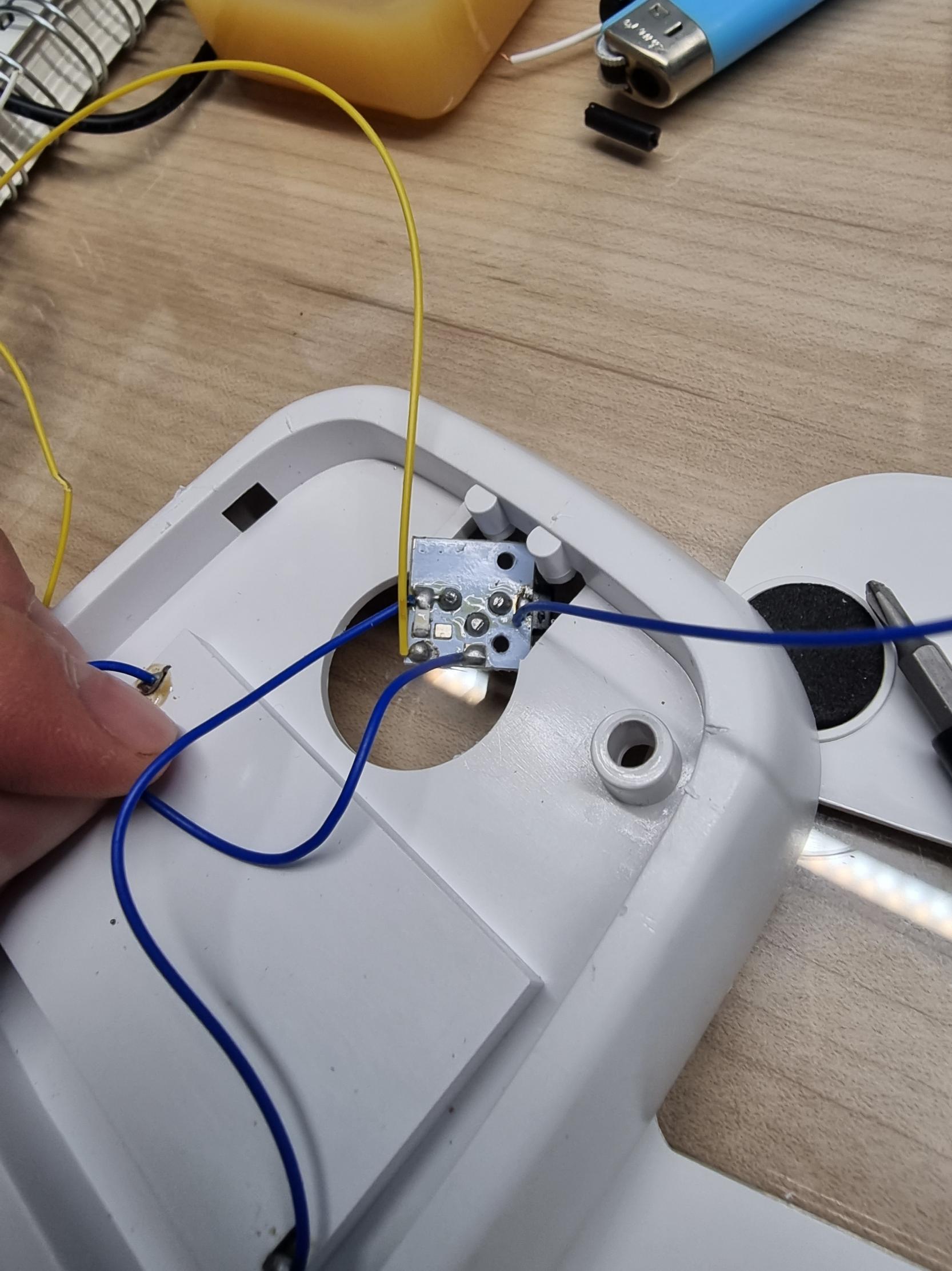 전원 케이블을 제거해주고, 조금 더 얇은 케이블로 다시 납땜해주었습니다.