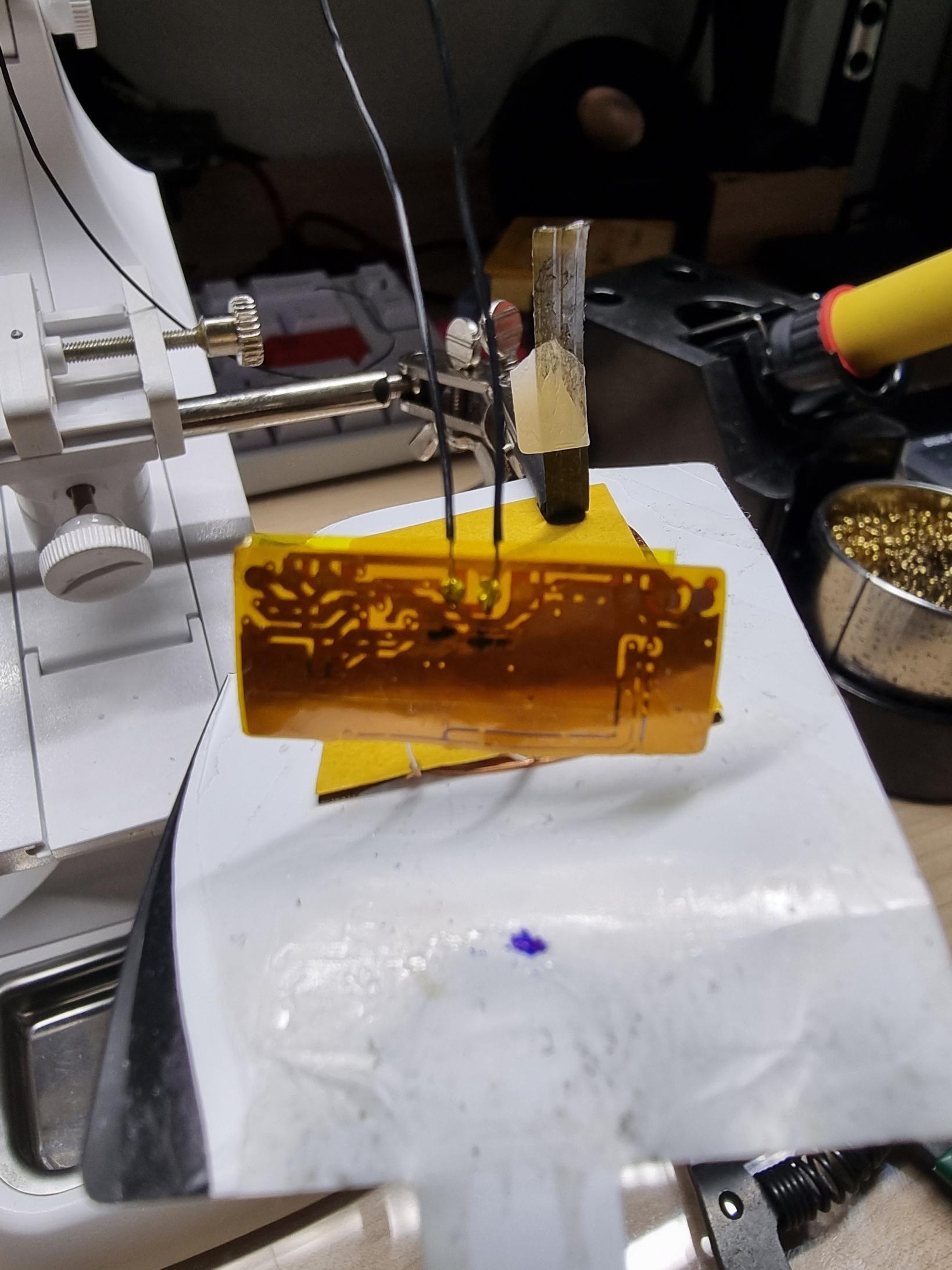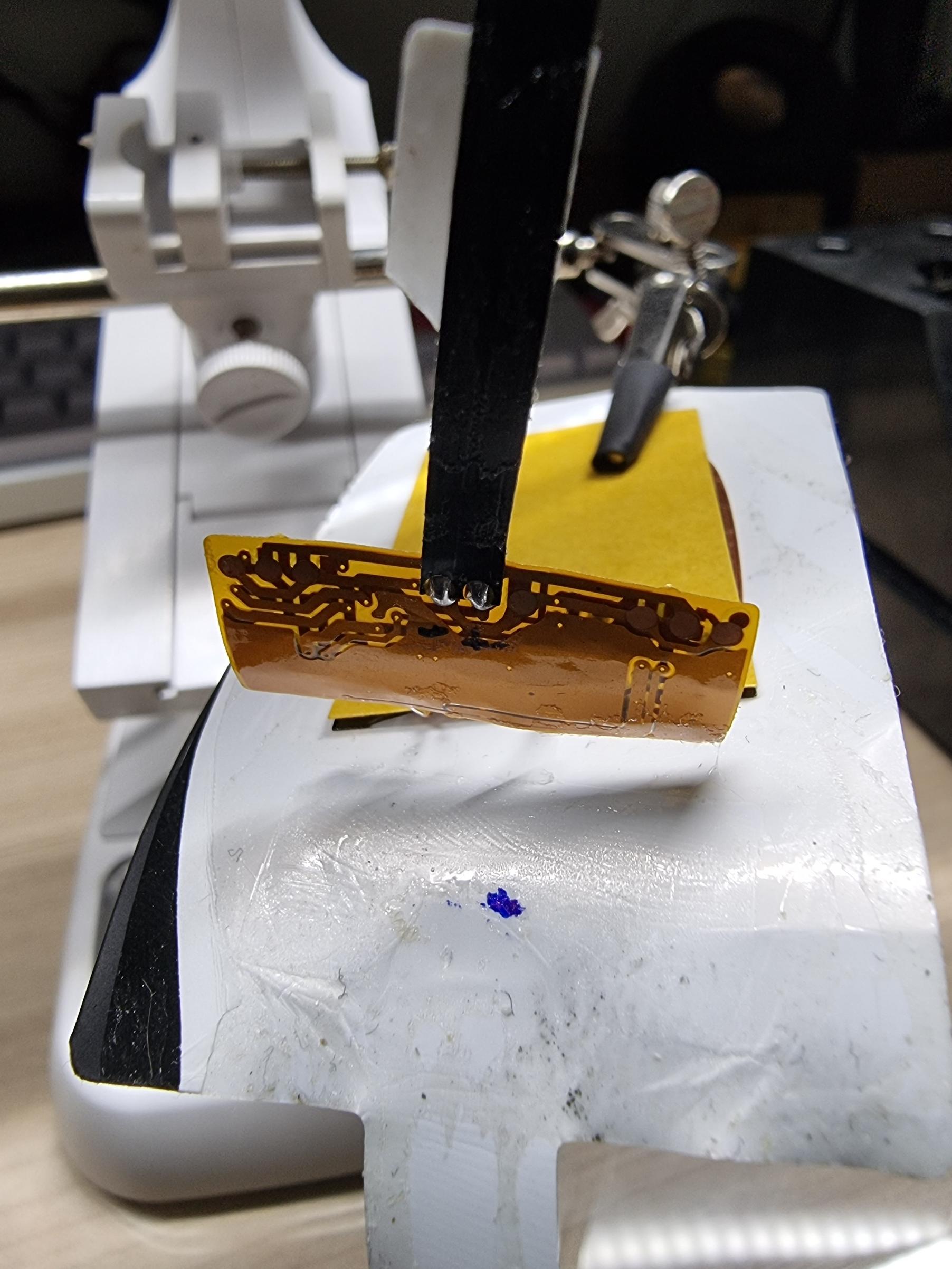 기판에 배선을 연결해주고, 캡톤 테이프로 확실히 고정해주었습니다.