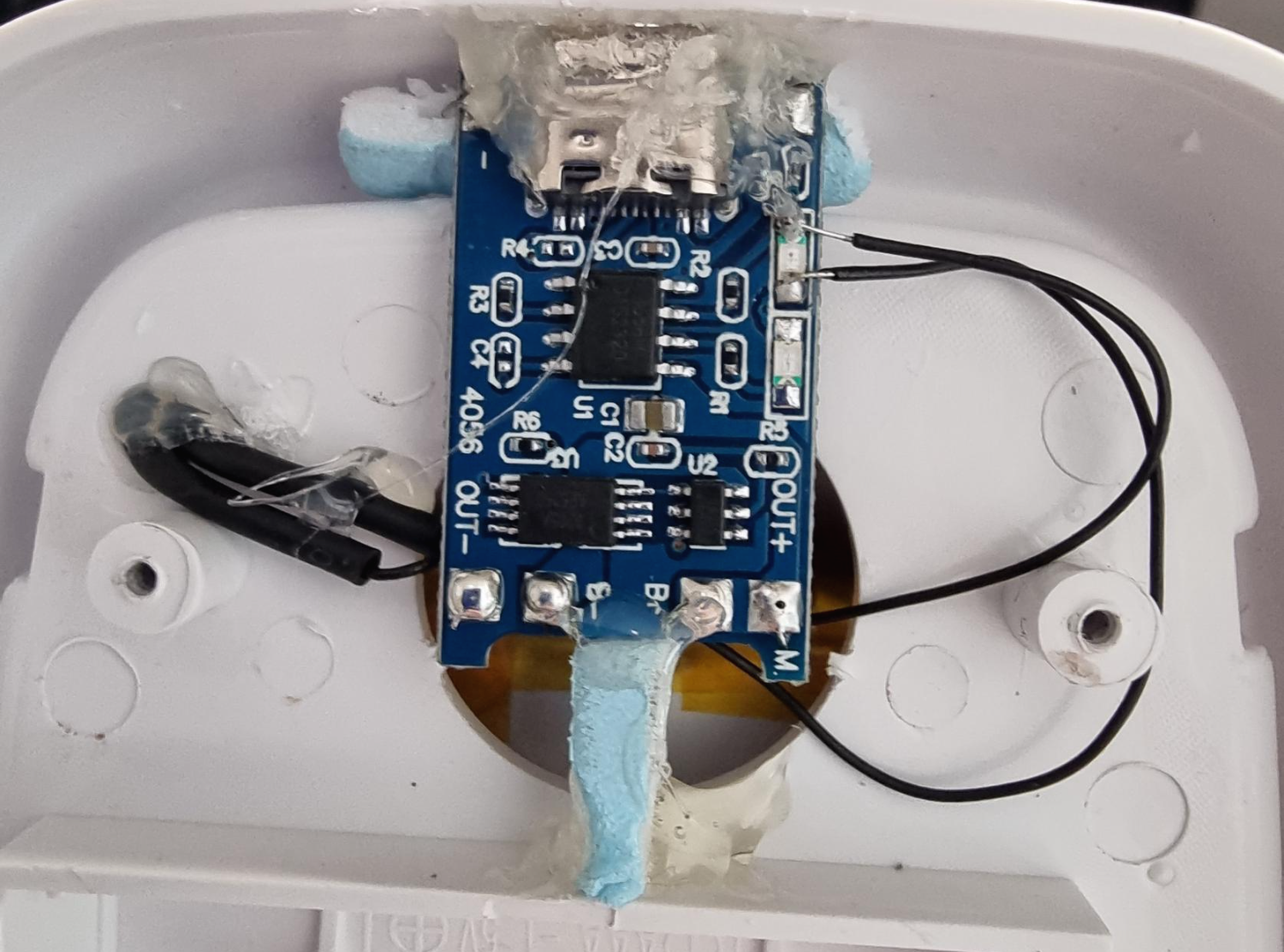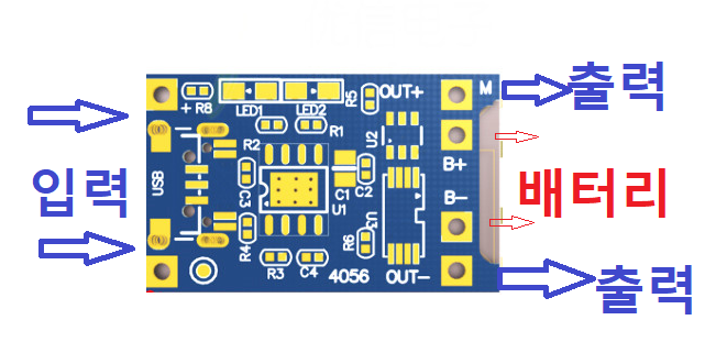 충전 회로 모듈을 잘 자리 잡아주고, 출력부위 배선을 회로 모듈에 땜을 해줍니다.