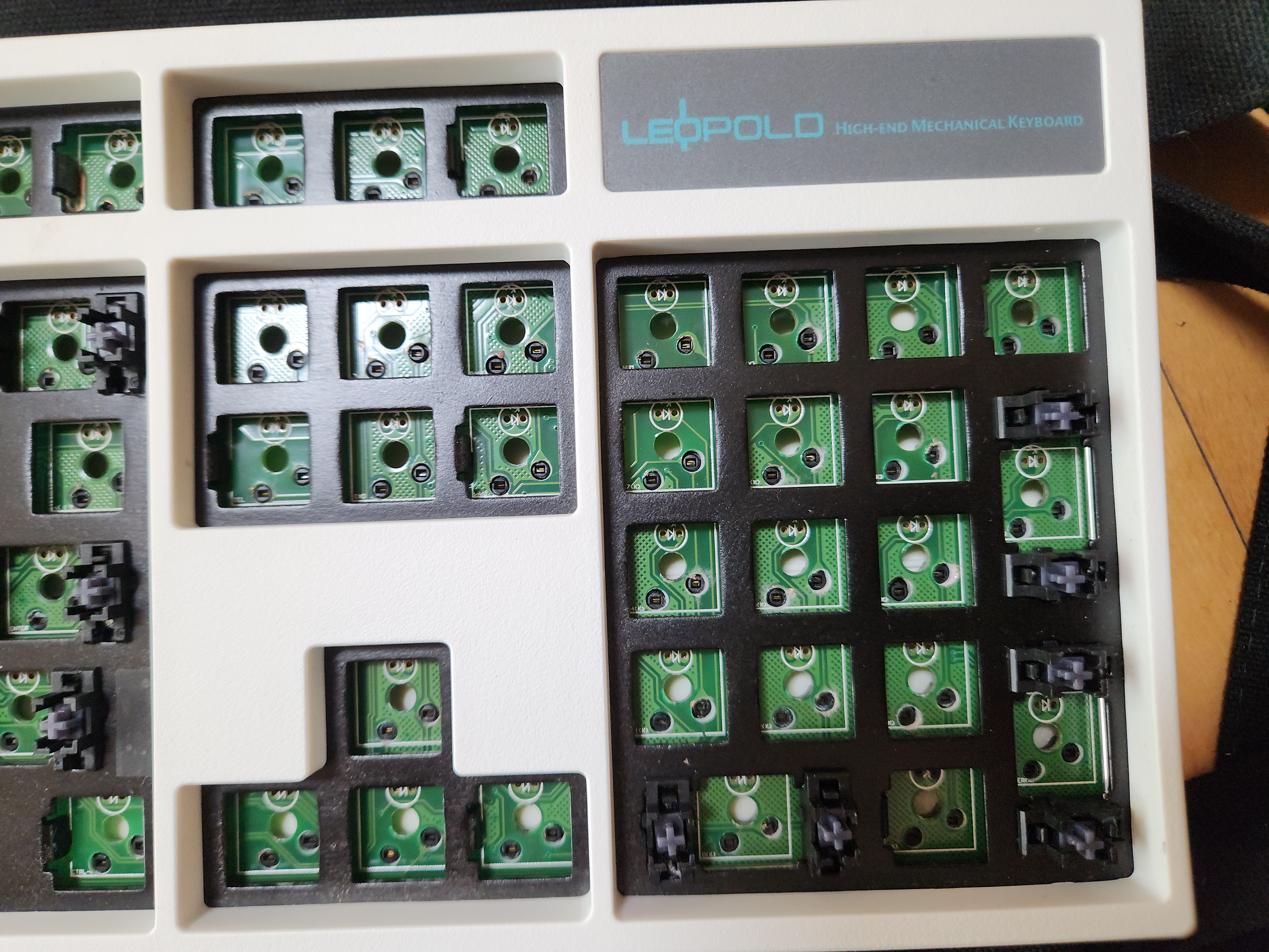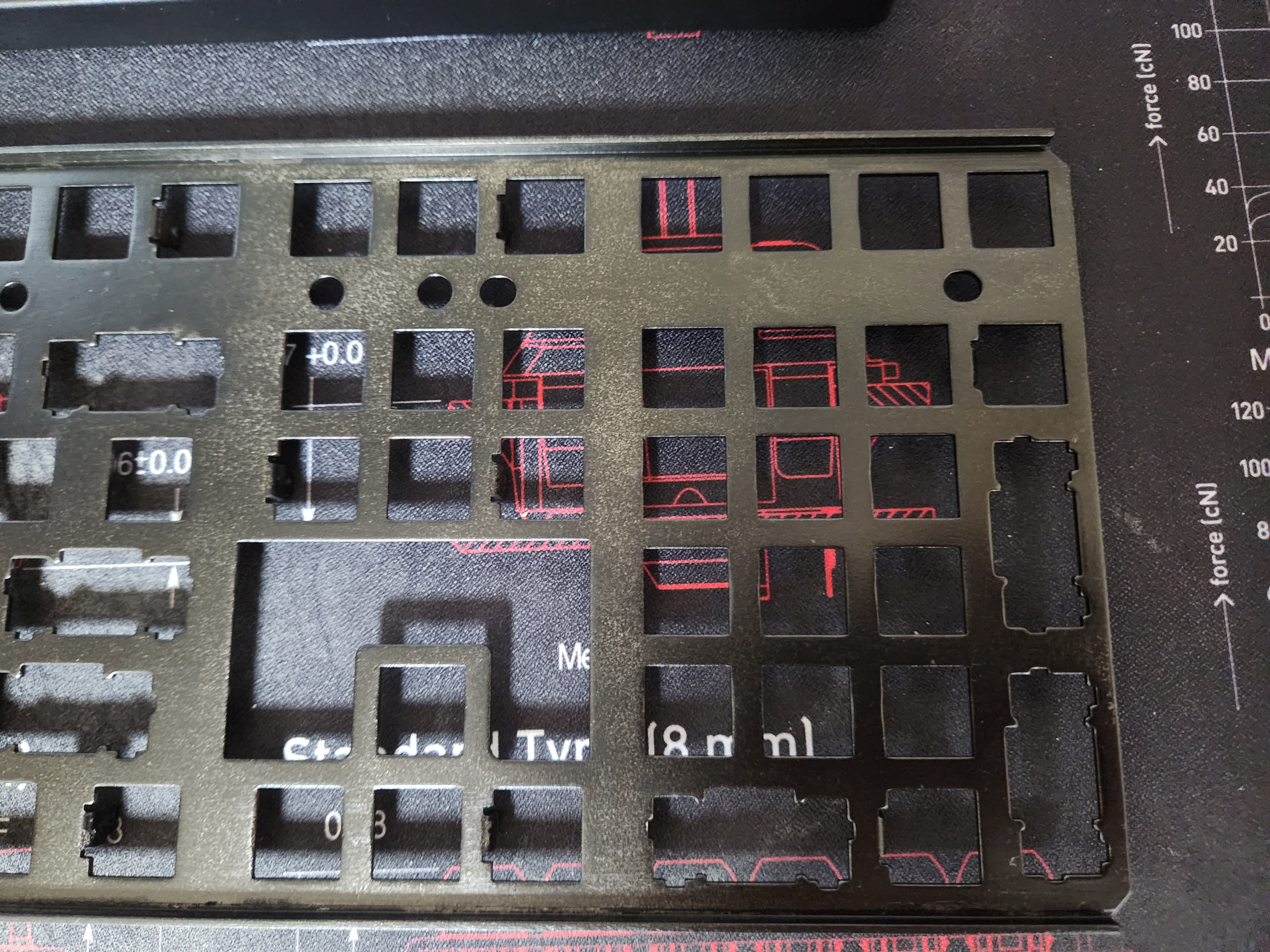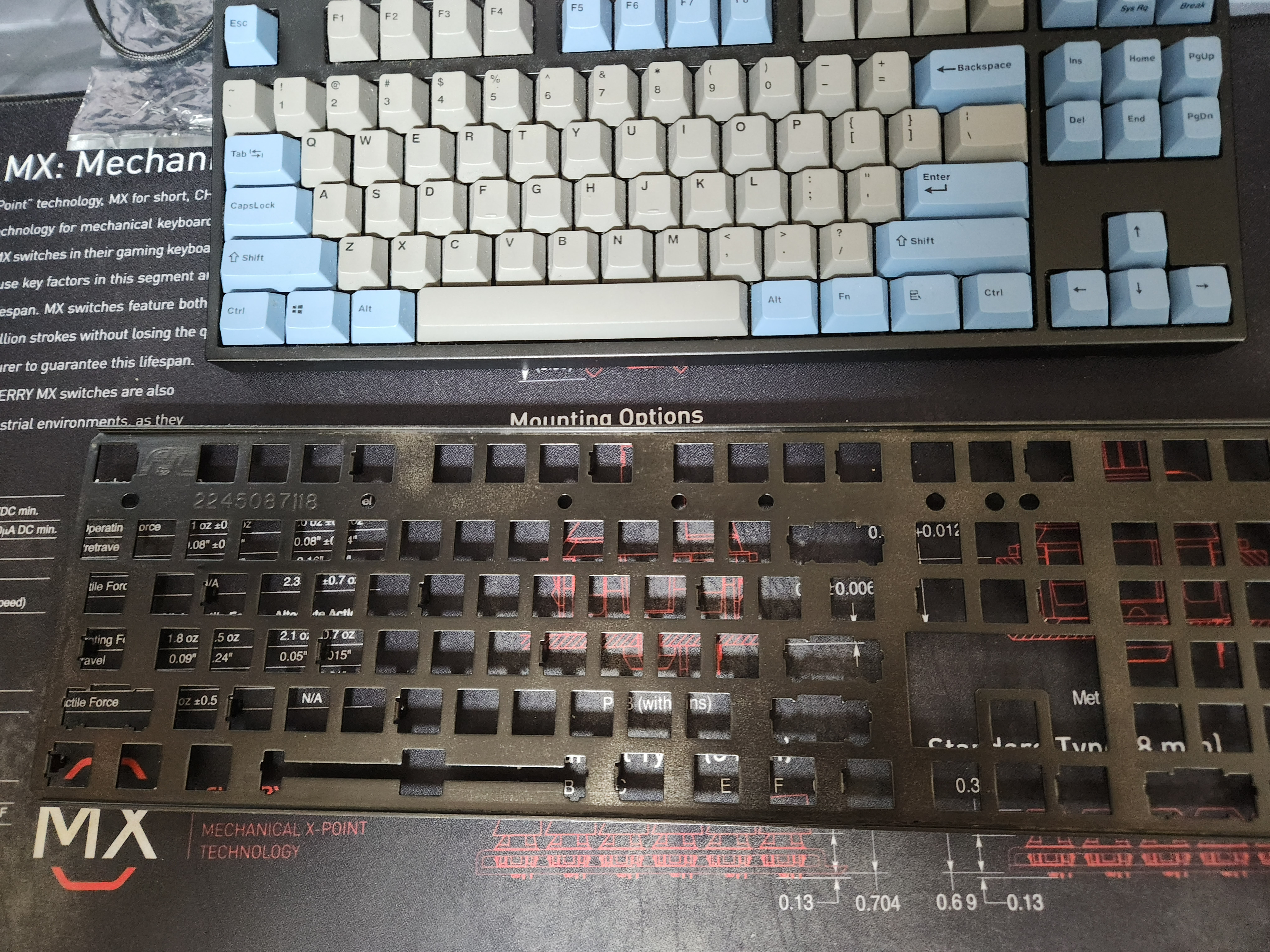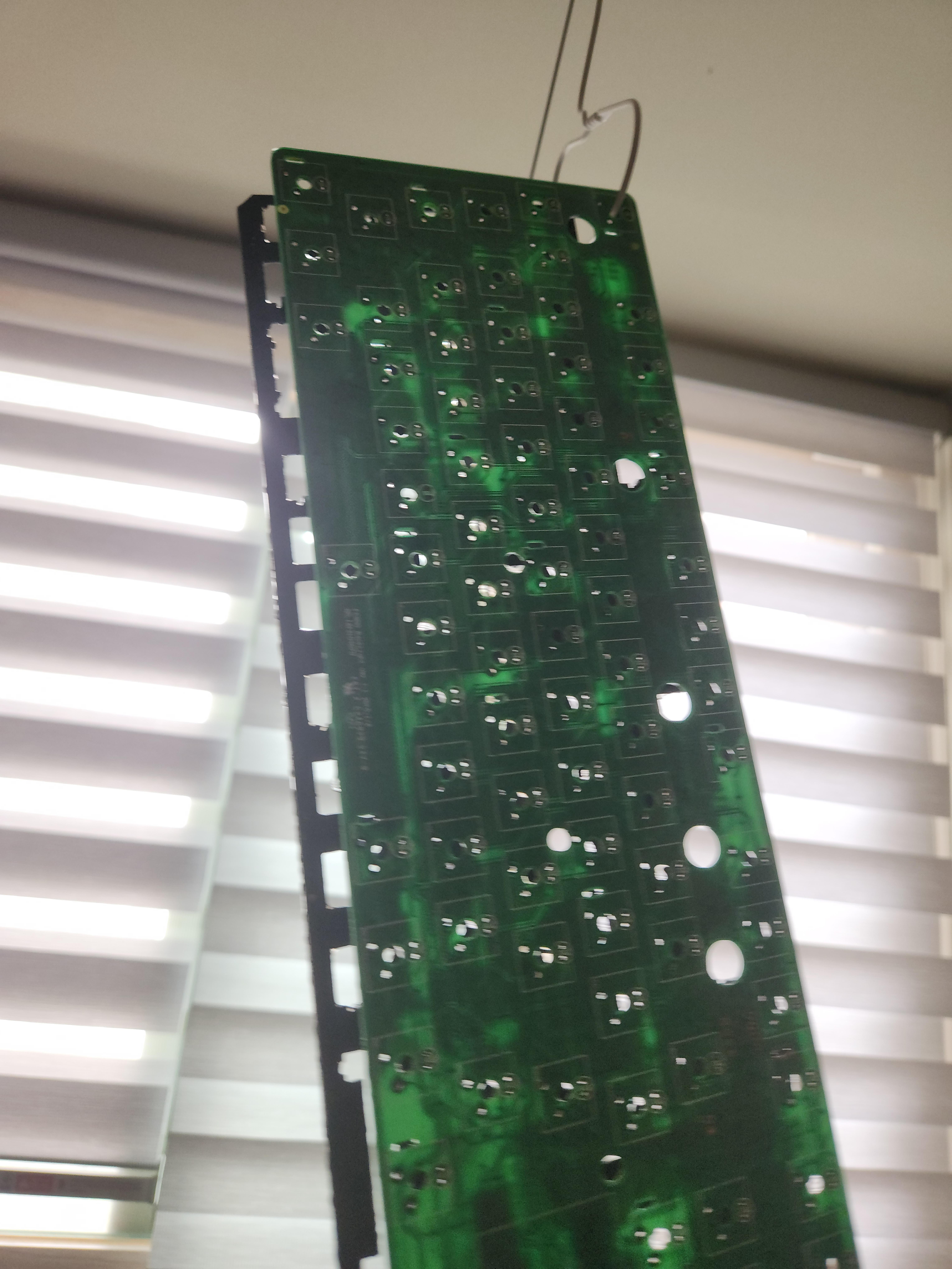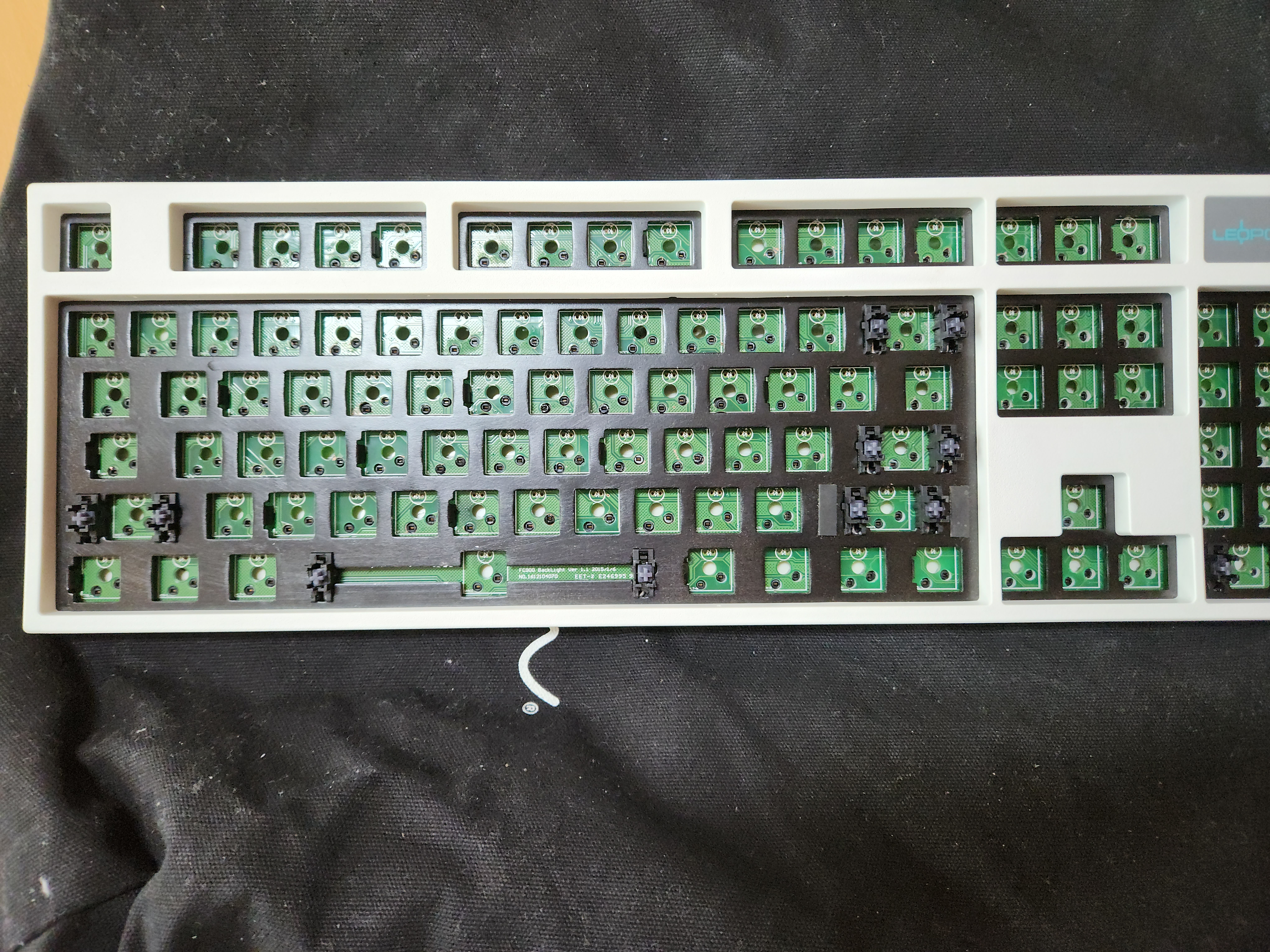 스위치가 안눌리는 것 (이건 애초에 흑축으로 바꿀 예정이였어서 문제 없음), 보강판에 녹이 있는것, 기판에도 끈쩍거리는게 많이 묻어있고, 외장재에도 묻어있다는게 문제였다.