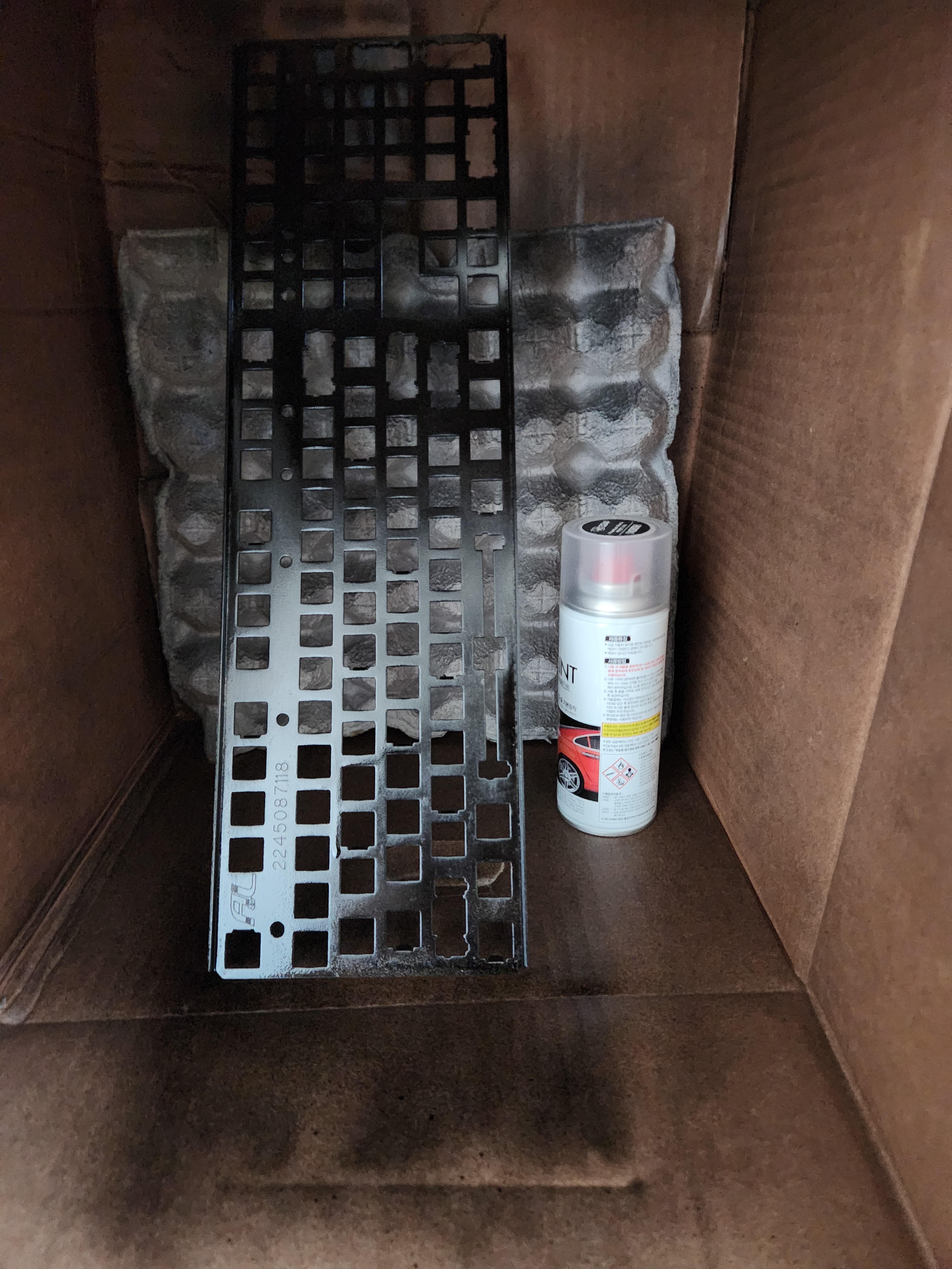 바깥에서 도색한것도 있지만 어짜피 보강판이라 대충대충 칠했더니 흰색 먼지가 붙은것도 있다...