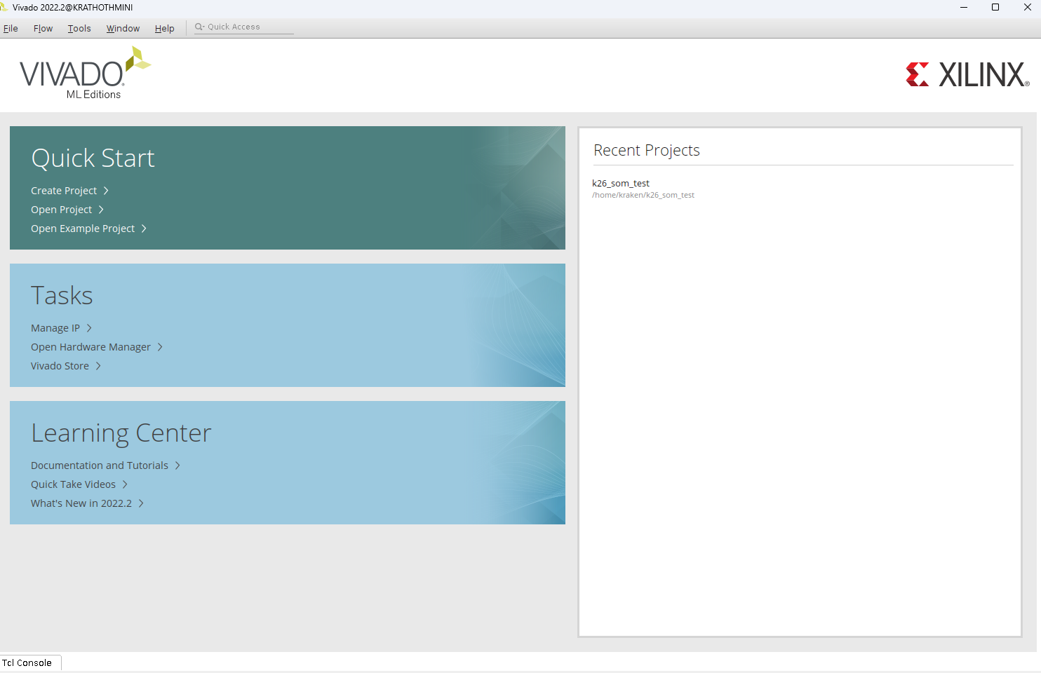 'KV260을 지원하는 버전 + 2023버전부터는 UI가 바뀌는데 아직 제대로 사용하질 못하겠음' 이다.