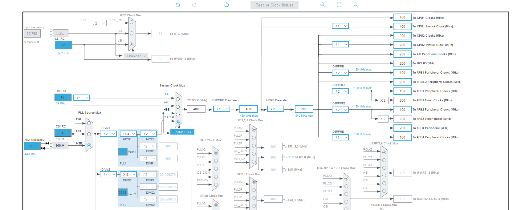 다음은 클럭을 계산하기 쉽게 400MHz로 변경해주었다. 다른 칩셋을 살펴보면 550MHz까지도 지원하는듯 싶다.
