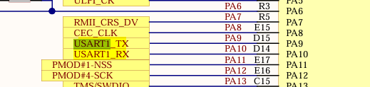DISCO 보드는 USART1 이 연결되어있다.