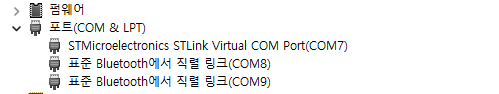 장치관리자에서 포트를 확인하면 COM7에 연결이 되어있다.
