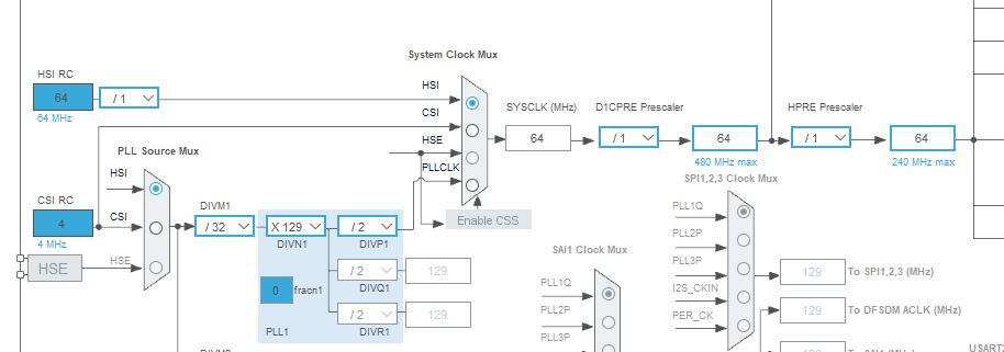 SYSCLK (시스템클럭)에는 HSI, HSE, PLL이 있으며 외에도 LSI(Watchdog, stop/standby mode, Auto wake up 등등의 용도)