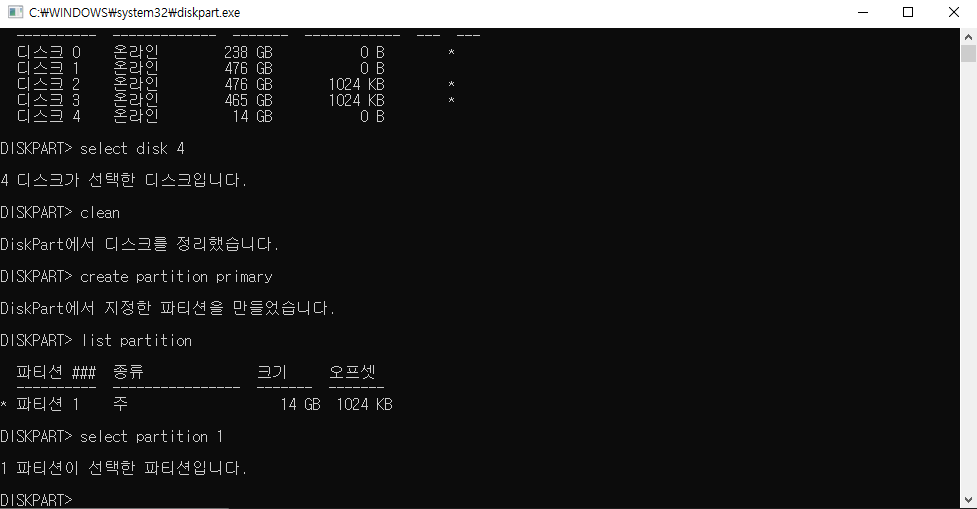 이렇게 파티션이 보인다면 정상적으로 초기화가 이루어진 것입니다.
