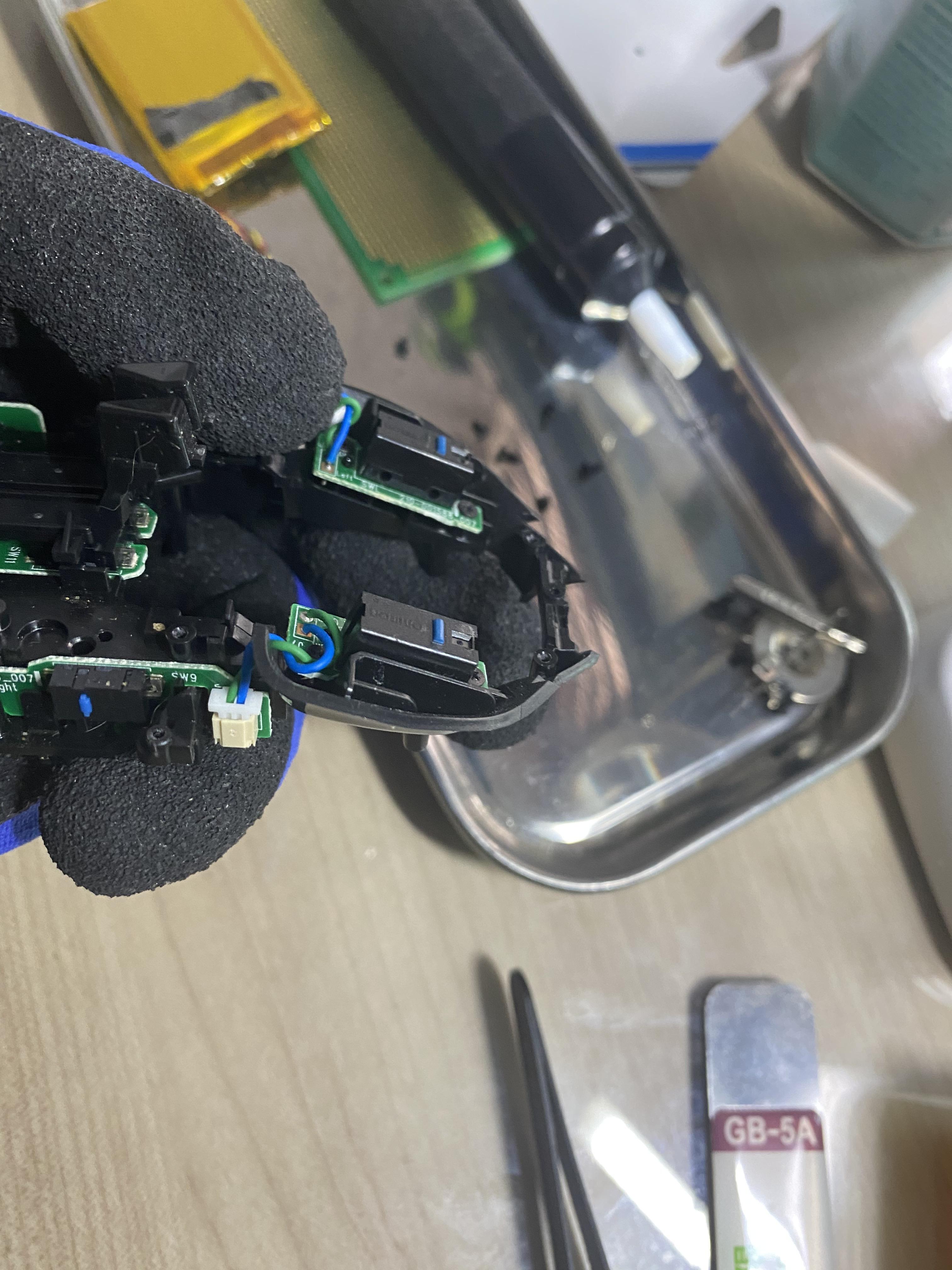 오른쪽 옴차 버튼이 망가진 G903 입니다. 지인의 G903으로 버튼 교체겸 다른 이상여부도 봐주기로 했습니다.